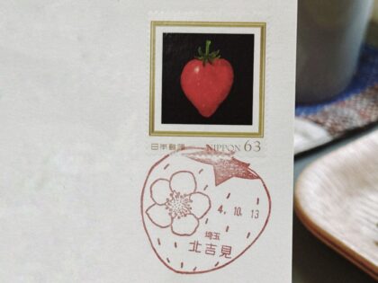Home › Landscape Stamp › 北吉見郵便局(埼玉県) 2022-10-13 北吉見郵便局(埼玉県) ペンパルさんより 吉見町のシンボル「いちご」をデザインしたもの。 日本郵便 イチゴ型の風景印、なんて洒落てるんだ。 魚沼吉田郵便局(新潟県) 秋の楽しい切手展