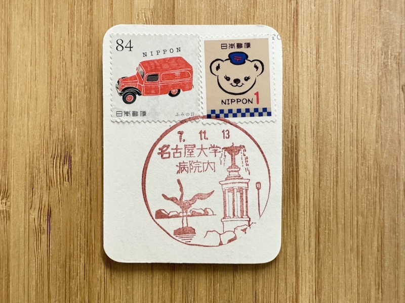 Home › Landscape Stamp › 名古屋大学病院内郵便局(愛知県) 2025-11-13 名古屋大学病院内郵便局(愛知県) 鶴舞公園の噴水塔と鶴の像 日本郵便 博物館明治村簡易郵便局(愛知県) 熱田郵便局(愛知県)