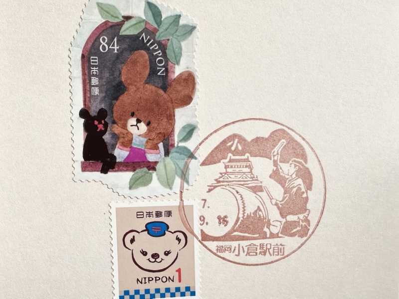Home › Landscape Stamp › 小倉駅前郵便局(福岡県) 2025-09-15 小倉駅前郵便局(福岡県) 意匠図案説明:足立山の小文字焼、小倉城、小倉祇園太鼓 日本郵便 長岡郵便局(新潟県) 門司港郵便局(福岡県)