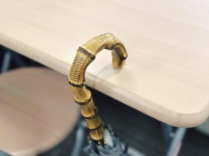 傘の滑り止めキャップというものはあるけれど、どうしても見た目の納得がいかない。そこで、Can★Doでクッションゴムを買ってきて、日傘の取っ手の先を平らに削って引っ付けた。