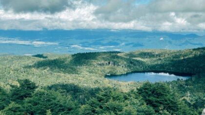 コケ観察も楽しいけど、やっぱり少し登ってみようかと夫と娘が下る時に通ってくる高見石小屋まで、ひとり向かう。ルートの確認もせず険しい方を選んでしまったのと、日頃の運動不足から途中で苦しくなることが何度もあり、落ちていた木の枝を杖にして、休み休みゆっくり登った。やっと高見石小屋について、おにぎりとゆで卵を食べてから見晴らしのいい展望台へ向かう。