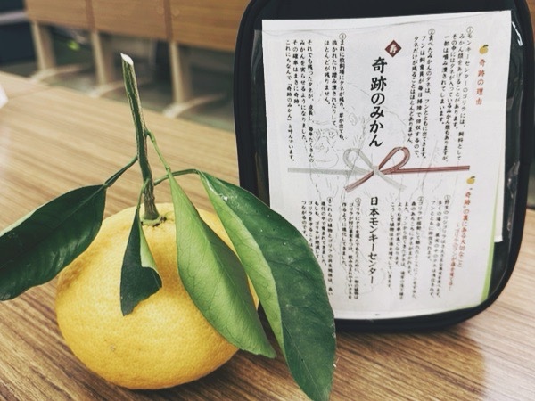 • モンキーセンターの縁起物「奇跡のみかん」を頂く